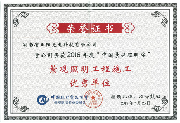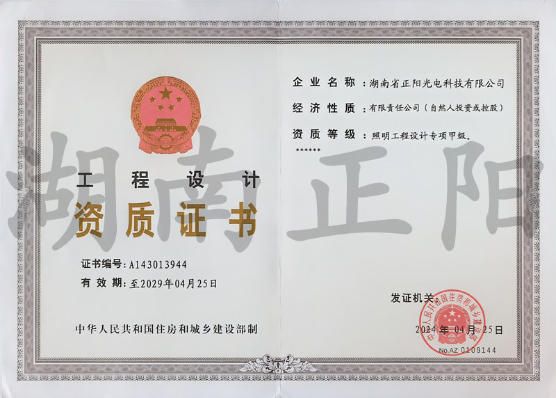 湖南省正陽光電科技有限公司是一家從事亮化工程及大型燈光藝術的設計、制作、安裝和維護于一體的專業(yè)化公司。公司資質齊全、管理嚴謹、技術先進、實力雄厚,取得了城市及道路照明工程專業(yè)承包壹級資質、照明工程設計專項甲級資質、國家高新技術企業(yè)、國家“重質量·守誠信”示范企業(yè)。